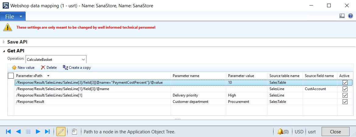 Some sales line types, such as shipping costs, payment costs, external coupons, and services, appear as sales lines, but their values are stored in the sales document header. When creating Get API rules for these types of lines, you must use the header source tables instead of the sales line tables. Otherwise, the rules will not return the expected values in the API response.