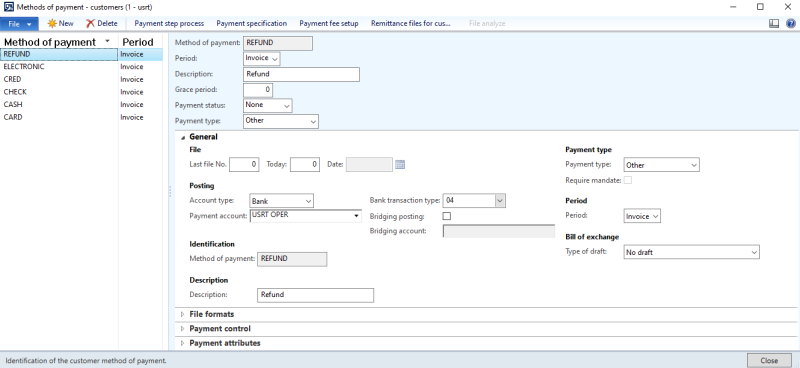 Step 2: Open the payment method which you want to link to the payment method from Microsoft Dynamics AX.