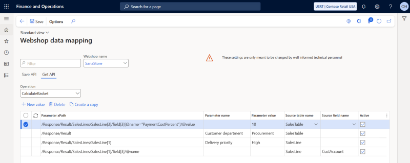 You can activate or deactivate webshop data mapping rules, set the priority of the rules and copy the rules from one webshop to another webshop starting from Sana Commerce Cloud 10.0.38 in Microsoft Dynamics 365 for Finance and Operations.