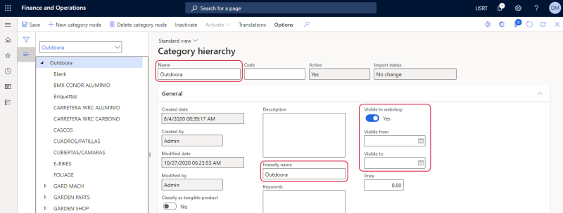 | Friendly name | The friendly name of the product category. It can be translated to other languages using Translations.