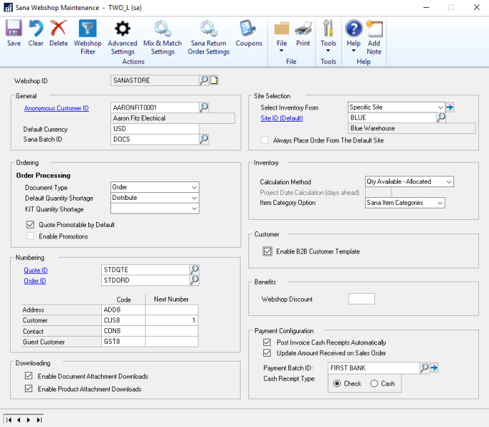 If you have several Sana webshops, all of them must be setup in Microsoft Dynamics GP with the appropriate webshop ID.