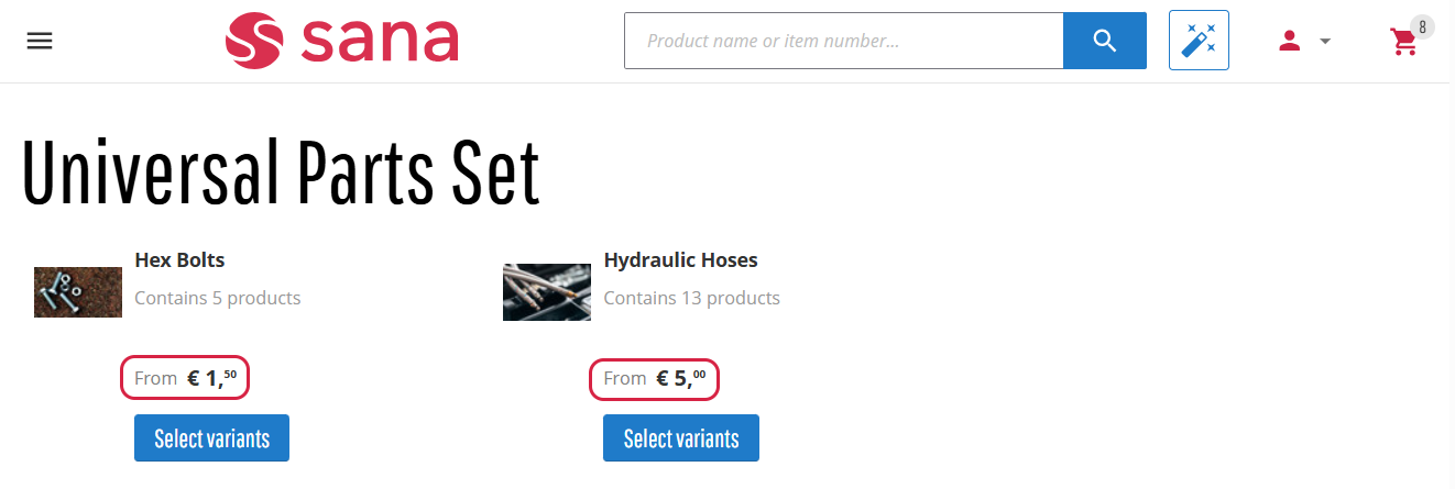 We previously introduced the Price visibility for a group setting, allowing you to show or hide the lowest price of items within a product group on the product list and search results pages in the Sana webstore.
