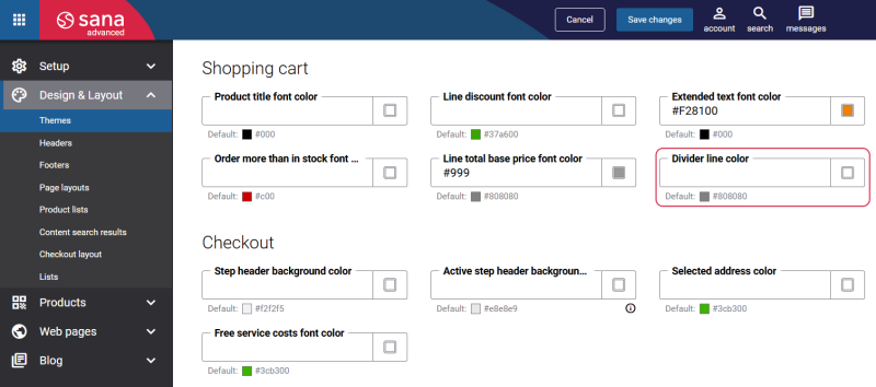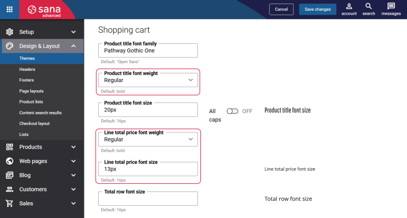Theme and styling enhancements: Added new settings to Themes for the Shopping cart page, allowing greater control over design and typography.