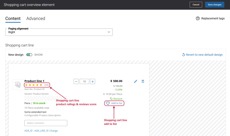 Editable Shopping Cart Lines: New Content Elements