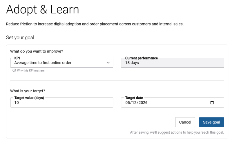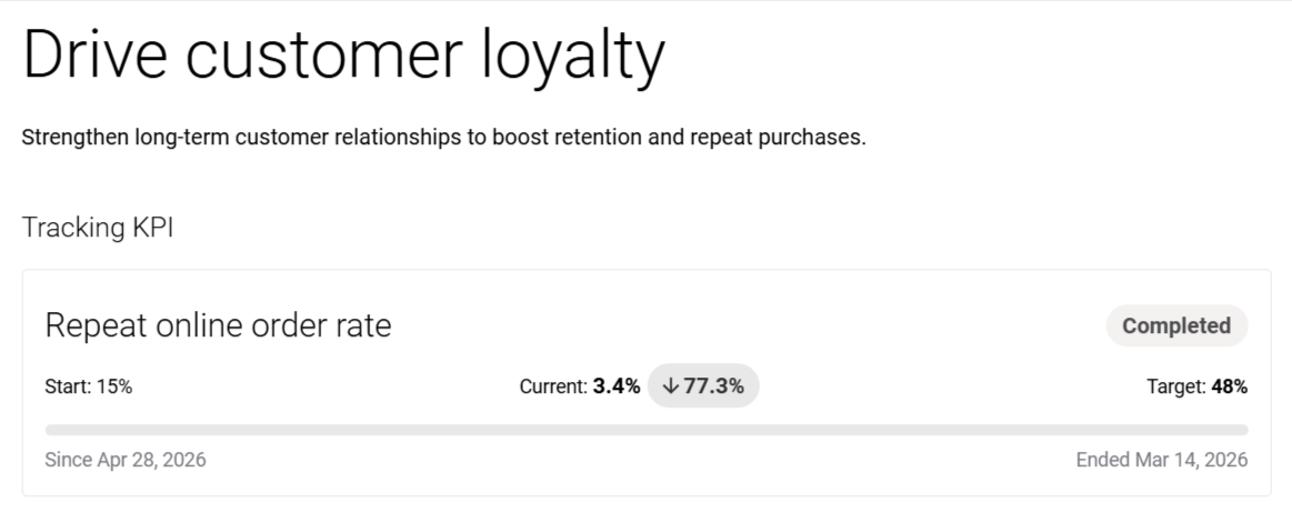 You can see the timeframe that shows when tracking for the goal started and when it ends, helping you see how long the goal has been active, monitor progress, and understand the period available to reach the target.