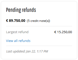 - Largest pending refund (shown when two or more credit notes are awaiting processing in ERP)
