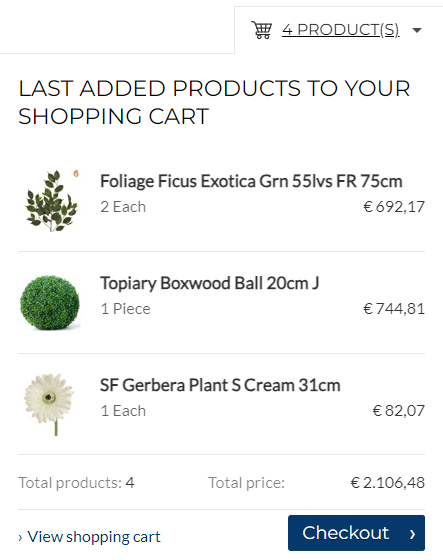 If this option is enabled, every time a customer adds a product to the shopping cart, the shopping cart miniature appears in the upper right corner of a Sana webstore. |