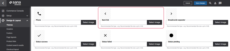 You can also change the icon of the Back to overview link using Themes. In Sana Admin click: Design & Layout > Themes. On the Icons tab, in the Other icons section, you can change the Back link icon.