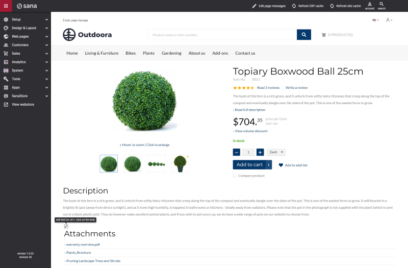 You can use product attachments, if you are selling electronics or some complex equipment used in mechanical engineering, and you need to provide some manuals to your customers online to help them find the necessary information before making a purchase decision. You can add user guides, certificates, licenses, price lists, and many more. These documents can be attached to the products in your ERP system and shown on the product details page in the Sana webstore.