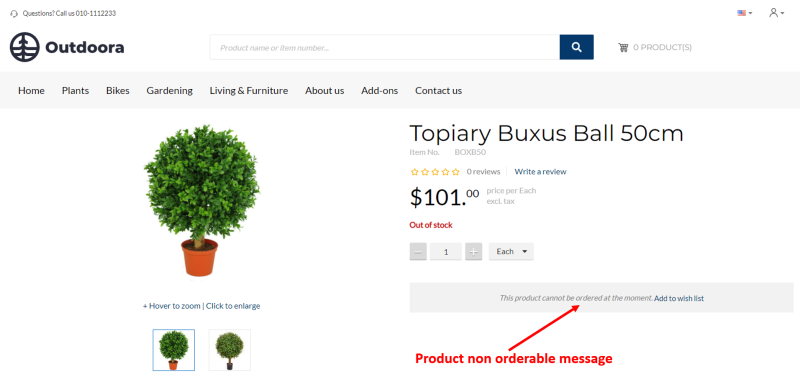 Product Non Orderable Message