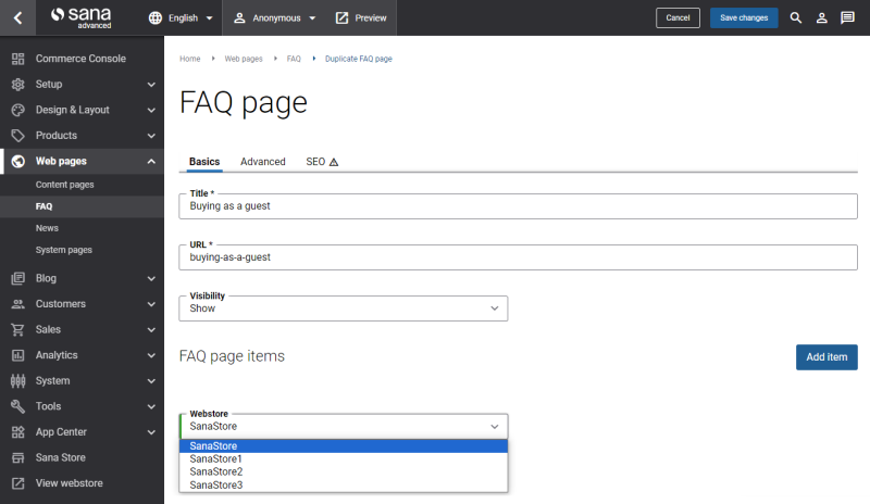 Content duplication takes up a lot of time that could be spent on something more important. When populating your Sana Commerce Cloud webstore with content, you may need to duplicate FAQ pages. This may be necessary when: