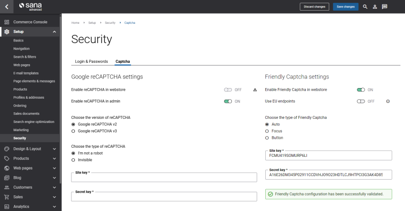 To configure Friendly Captcha in Sana Admin: