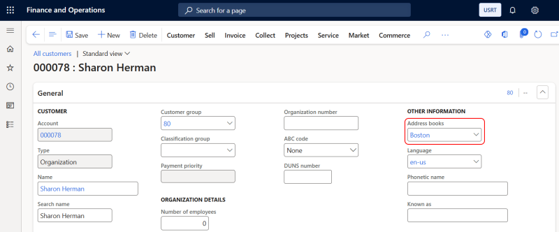 The address book is copied from the customer template during registration, starting with Sana Commerce Cloud 10.0.135 in Microsoft Dynamics 365 for Finance and Operations.