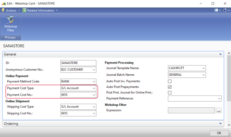 For the correct functioning of payment methods in the Sana webshop, you need to configure G/L account in Microsoft Dynamics NAV.