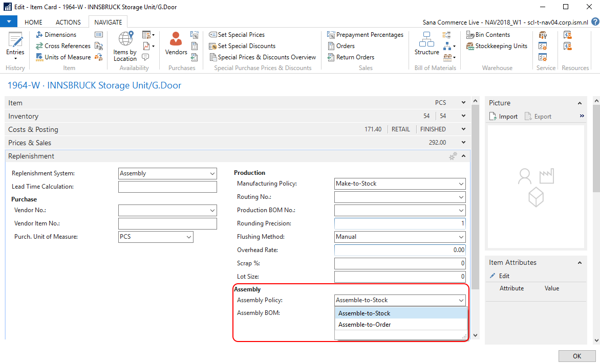 For more information about Assembly Policy, refer to the official Microsoft Dynamics NAV Help: Assemble to Order or Assemble to Stock.