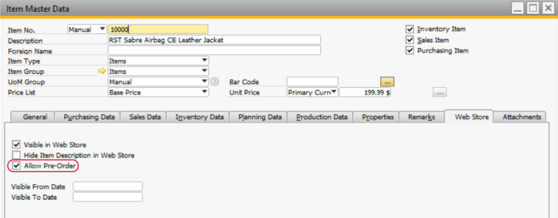 Step 2: Open the item which you want to make available for pre-order and on the Web Store tab, select the Allow Pre-Order checkbox.