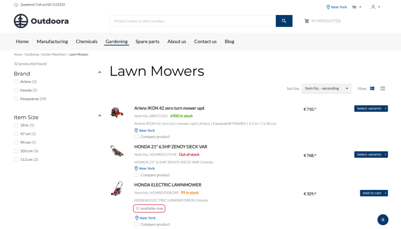 B2C layout: Real-time stock availability is displayed for simple products (not variants) and is calculated based on the minimum order quantity, if set in ERP.