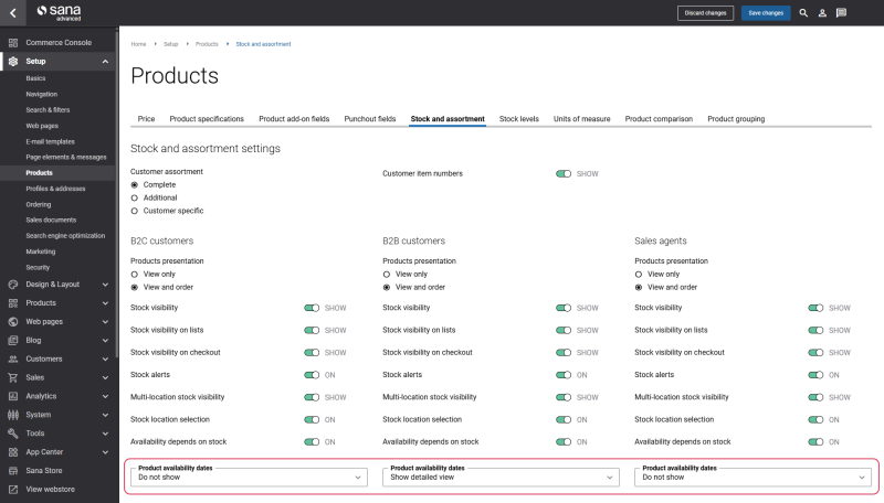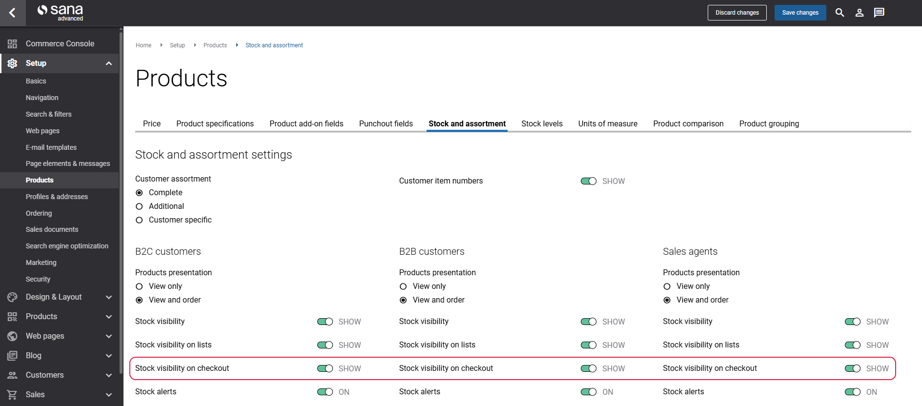 Step 1: In Sana Admin click: Setup > Products > Stock and assortment.