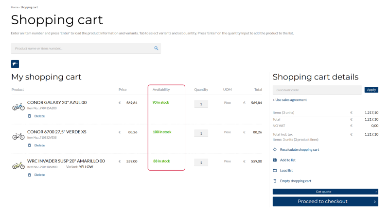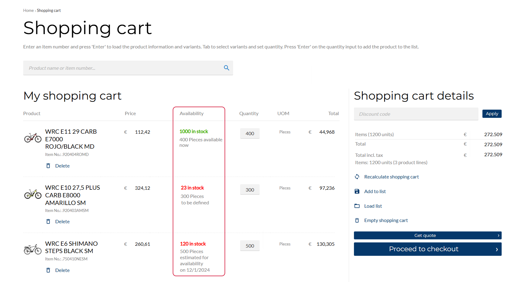 In the screenshot below, you can see how the real-time stock information is displayed in the shopping cart.