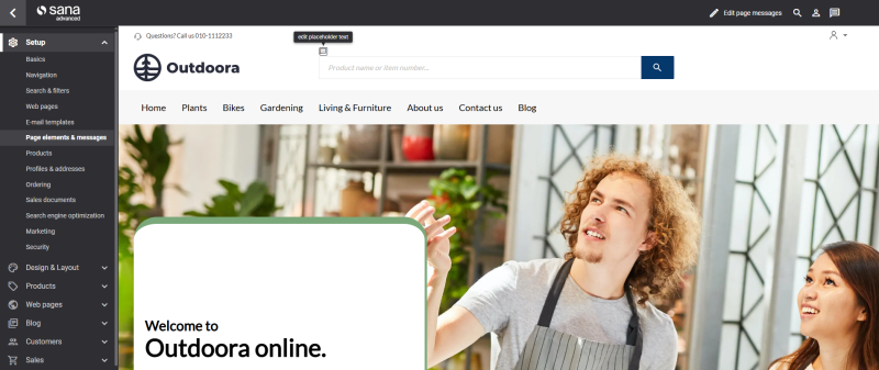 - Use the In-site editor to edit the text directly on the webstore. There is no need to search for a specific text or validation message in Sana Admin to change it.