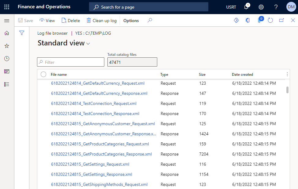 If you enable logging in Microsoft Dynamics 365 for Finance and Operations, you can now see a list of all stored requests and responses. You can download any request or response and open it. This can be useful for technical users who use logs to identify certain problems and for debugging purposes.