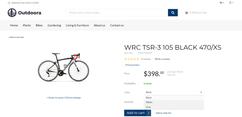 Currently, it is possible to use only 2 product variant components, for example, color and size. Product variants are shown on the product details pages in the Sana webstore and customers can place orders with them.