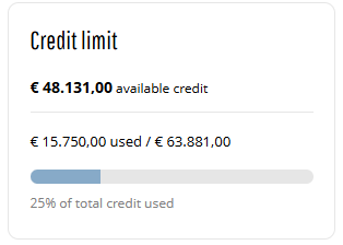 The Credit limit widget is used to show customers how much credit is available on their account and how much has already been used, helping them manage purchases and avoid order delays.