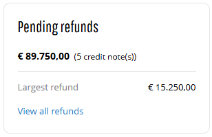 The Pending refunds widget summarizes all credit notes from the last 12 months that are still pending. Customers can see: